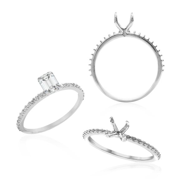 Emerald Shape 4 Prong Zinnia with Side Stones Solitaire