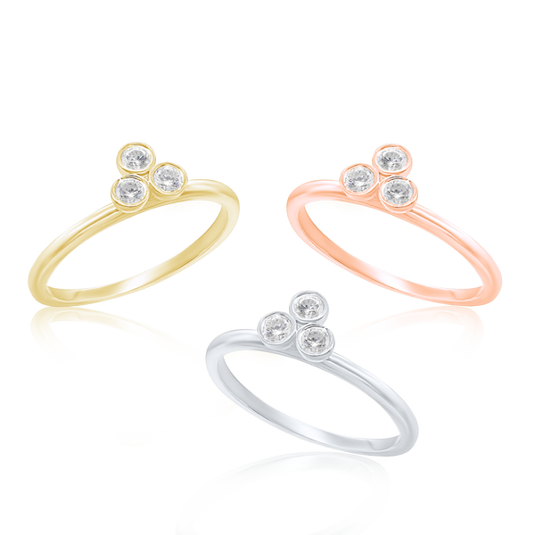 Stackable Ring with Three Stone Cluster in Sterling Silver