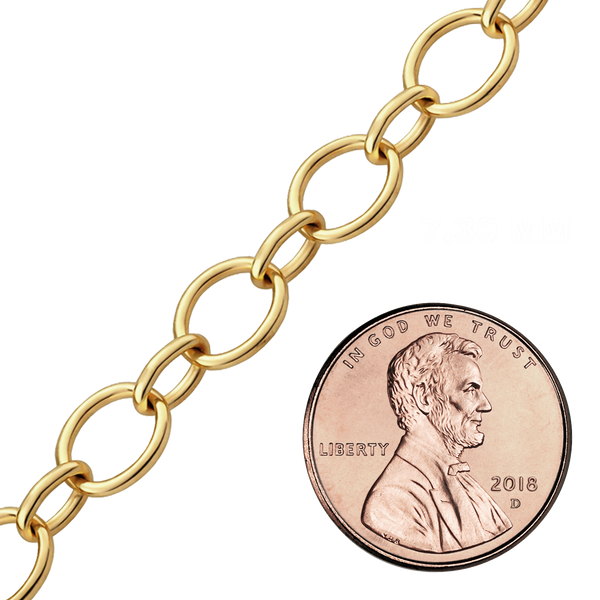 Bulk / Spooled Alternating Round Link Cable Chain in 14K Gold-Filled (7.30 mm)