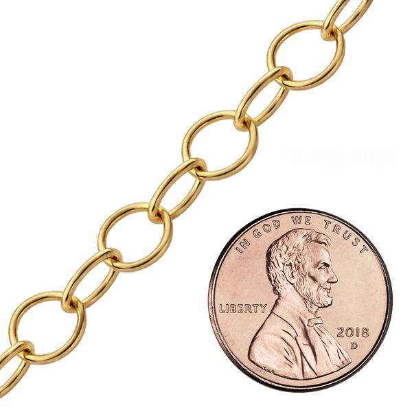 Bulk / Spooled Round Link Cable Chain in 14K Gold-Filled (7.30 mm)