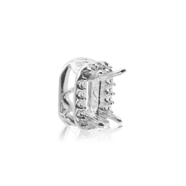 Emerald Four Prong Double Halo Pendant in Sterling Silver (6.00 x 4.00 mm - 12.00 x 10.00 mm)