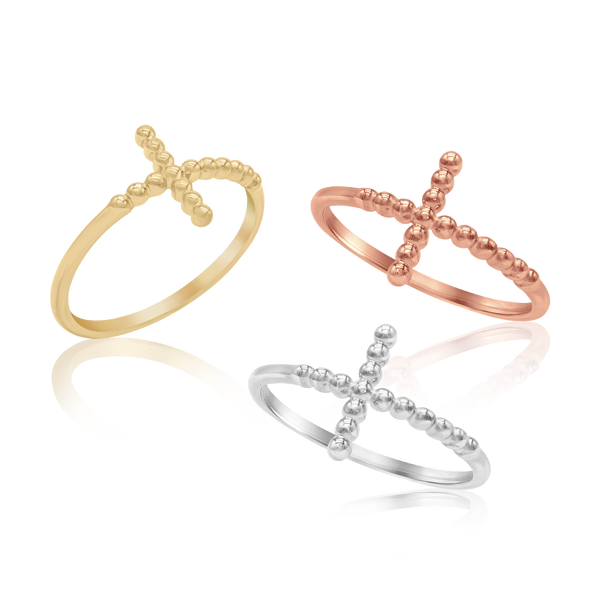 Bead Sideways Cross Stackable Ring in Sterling Silver