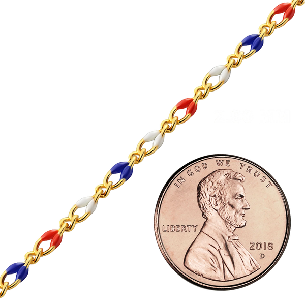 Bulk / Spooled Red, White & Blue Single Figaro Enamel Chain in 14K Gold-Filled (2.90 mm)