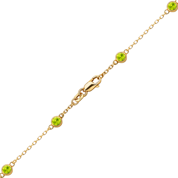 Finished Diamond by the Yard Cable Chain Anklet in 14K Yellow Gold with Peridot Stones