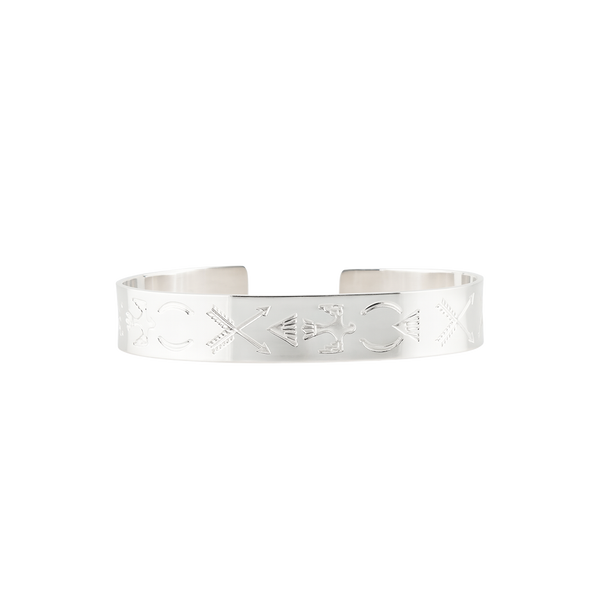 Sterling Silver Symbol Pattern Cuff Bracelet WPFL34C
