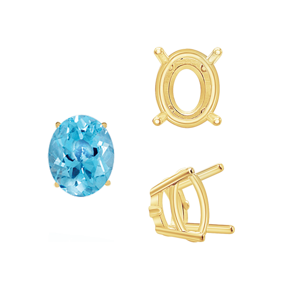 Four Prong Oval Wire Basket Settings With Pads in 14K Gold (5.00 x 3.00 mm - 12.00 x 10.00 mm)