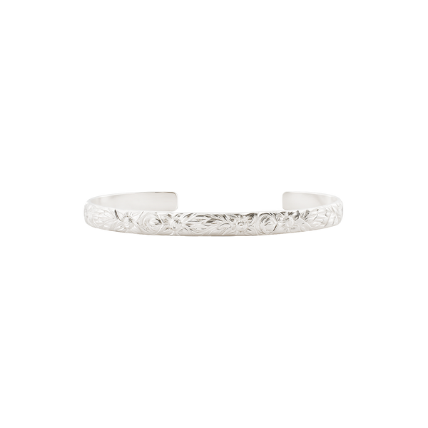 Sterling Silver Floral Pattern Cuff Bracelet WPDM25C