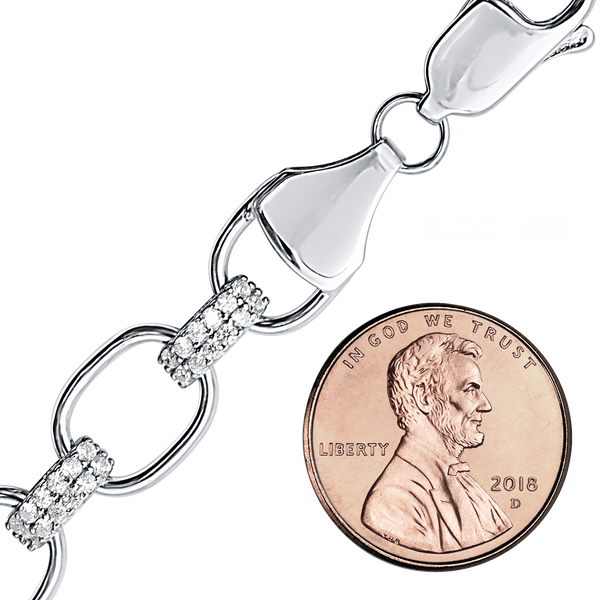 Finished Oval Paperclip Cable Necklace with Alternating CZ Stones in Sterling Silver (9.00 mm)