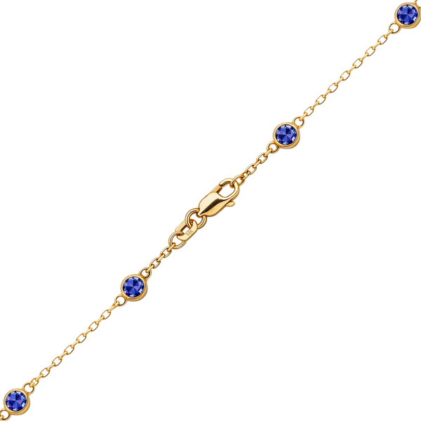 Finished Diamond by the Yard Cable Chain Necklace in 14K Yellow Gold with Sapphire Stones