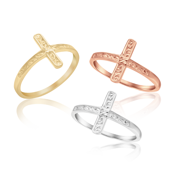 Engraved Cross Stackable Ring in Sterling Silver