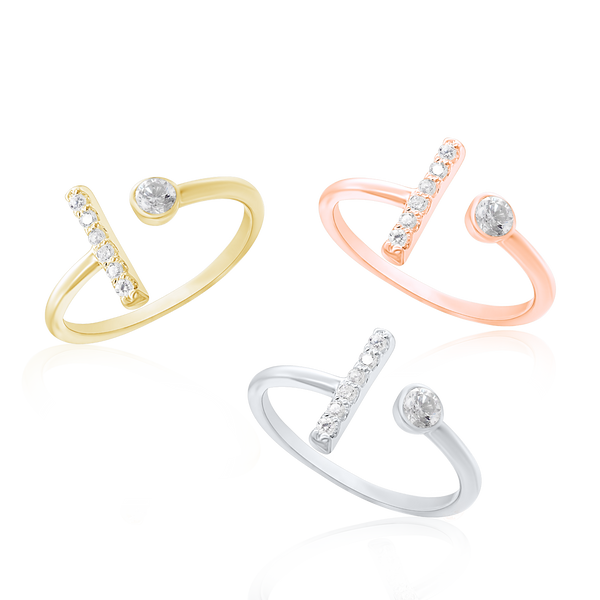 Stackable Ring with Stones in Bar and Circle in Sterling Silver