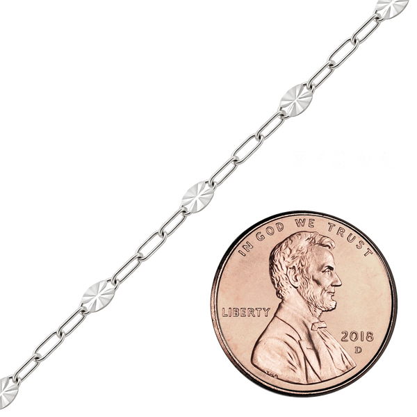 Bulk / Spooled Sparkle Alternating Valentino Paperclip Chain in Platinum (2.40 mm)
