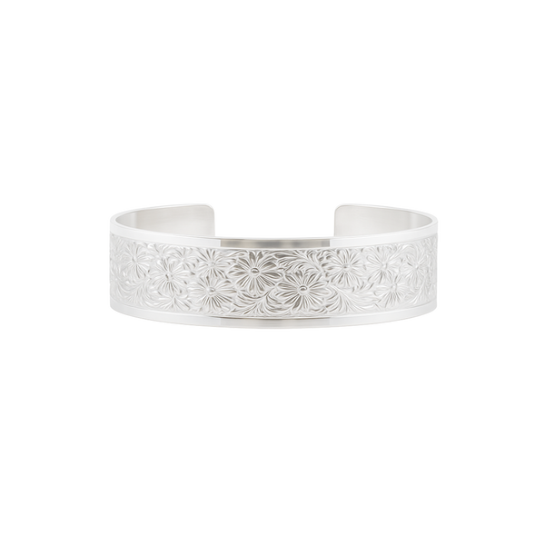 Sterling Silver Floral Pattern Cuff Bracelet WPFL4C