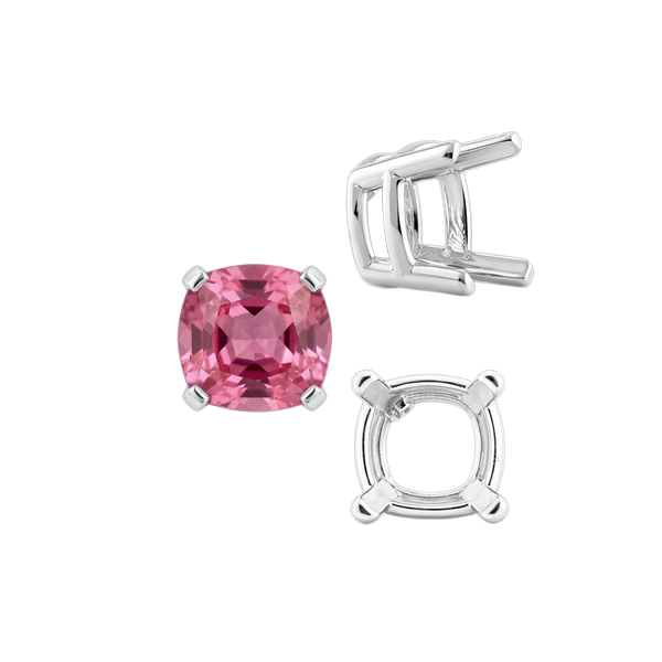 Four Prong Cushion Heavy Basket Settings in Sterling Silver (4.00 x 4.00 mm - 10.00 x 10.00 mm)